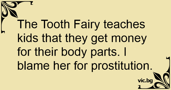 The Tooth Fairy teaches kids that they get money for their body parts. I blame her for prostitution.
