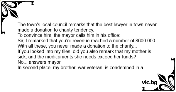 The town’s local council remarks that the best lawyer in town never made a donation to charity tendency.