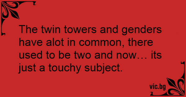 The twin towers and genders have alot in common, there used to be two and now… its just a touchy subject.