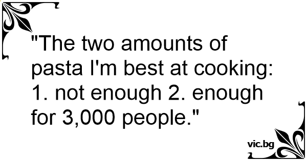 "The two amounts of pasta I'm best at cooking: 1. not enough 2. enough for 3,000 people."