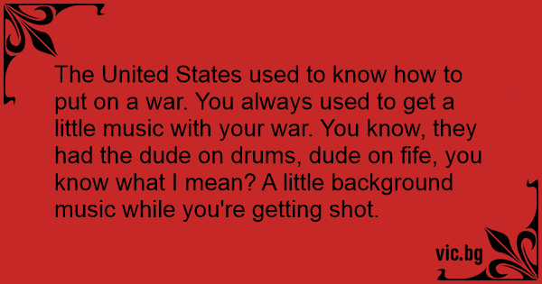 The United States used to know how to put on a war. You always used to get a little music with your war. You know, they had the dude on drums, dude on fife, you know what I mean? A little background music while you're getting shot.