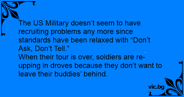 The US Military doesn’t seem to have recruiting problems any more since standards have been relaxed with “Don’t Ask, Don’t Tell.”