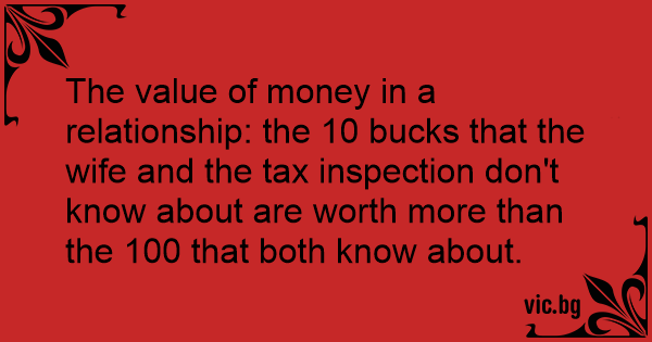 The value of money in a relationship: the 10 bucks that the wife and the tax inspection don't know about are worth more than the 100 that both know about.