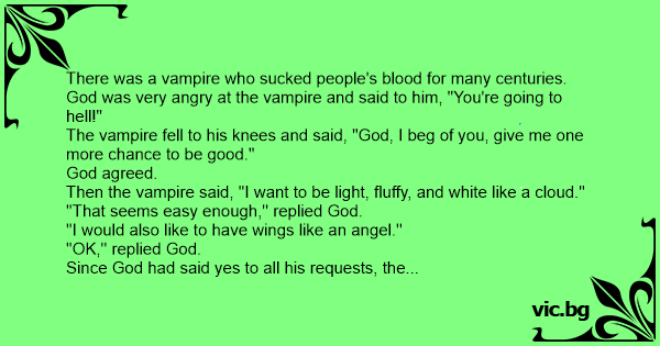 There was a vampire who suскеd people's blood for many centuries. God was very angry at the vampire and said to him, "You're going to hеll!"