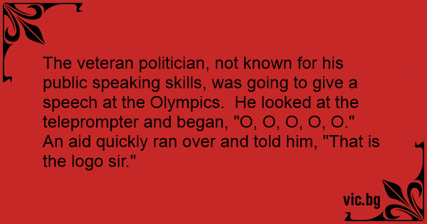 The veteran politician, not known for his public speaking skills, was going to give a speech at the Olympics. He looked at the teleprompter and began, "O, O, O, O, O."