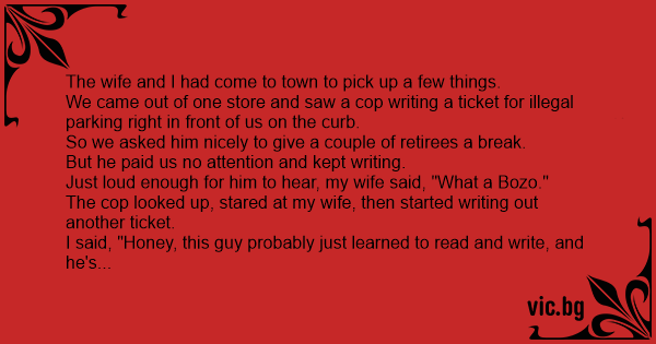 The cop looked up, stared at my wife, then started writing out another ticket.