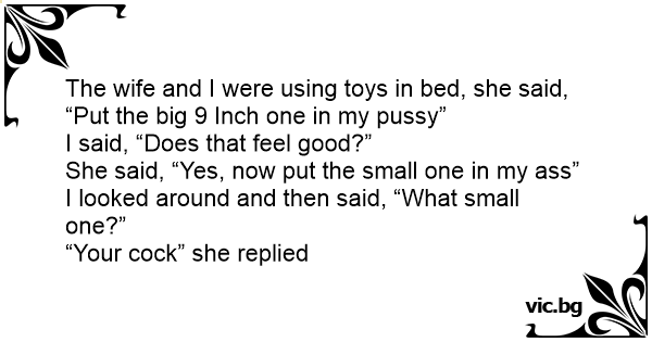 The wife and I were using toys in bed, she said, “Put the big 9 Inch one in my рussy”