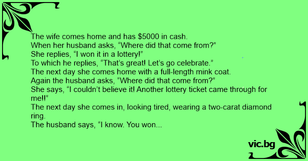 The husband says, “I know. You won the lottery.