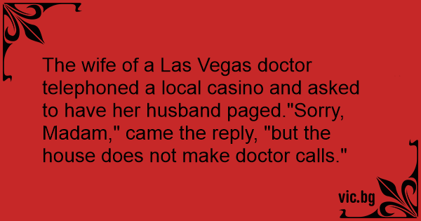 The wife of a Las Vegas doctor telephoned a local casino and asked to have her husband paged."Sorry, Madam," came the reply, "but the house does not make doctor calls."