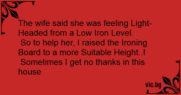 The wife said she was feeling Light-Headed from a Low Iron Level.