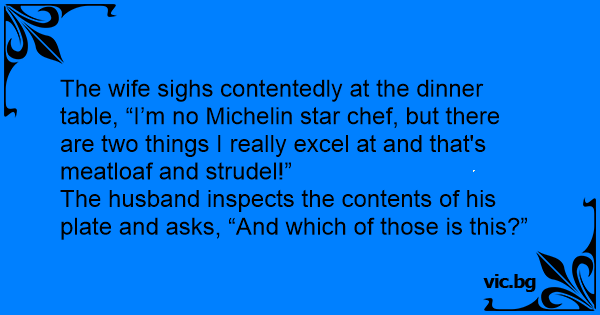 The wife sighs contentedly at the dinner table, “I’m no Michelin star chef, but there are two things I really excel at and that's meatloaf and strudel!”