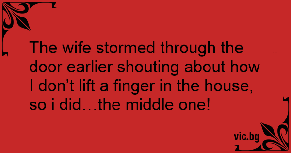 The wife stormed through the door earlier shouting about how I don’t lift a finger in the house, so i did…the middle one!