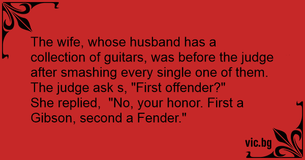 She replied, "No, your honor. First a Gibson, second a Fender."