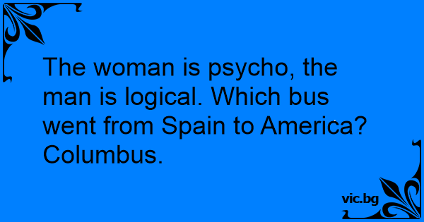 The woman is рsyсhо, the man is logical. Which bus went from Spain to America?