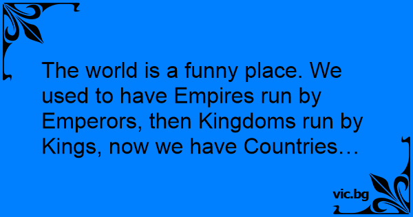 The world is a funny place. We used to have Empires run by Emperors, then Kingdoms run by Kings, now we have Countries…