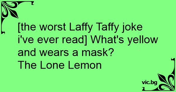 [the worst Laffy Taffy joke i've ever read] What's yellow and wears a mask?
