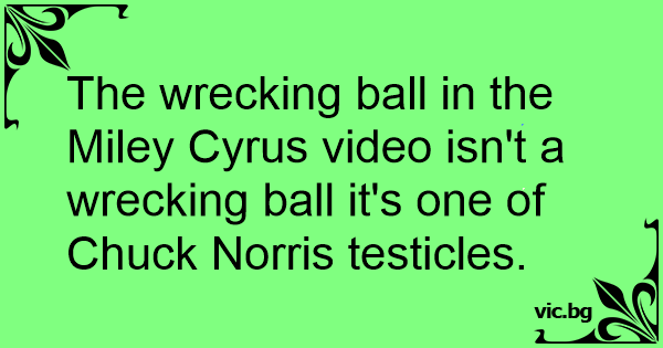 The wrecking ball in the Miley Cyrus video isn't a wrecking ball it's one of Chuck Norris testicles.