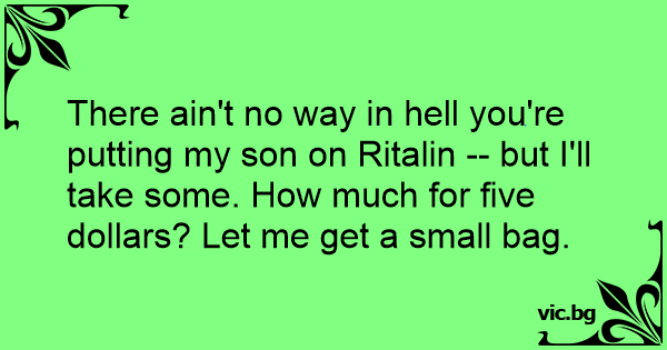 There ain't no way in hеll you're putting my son on Ritalin -- but I'll take some. How much for five dollars? Let me get a small bag.