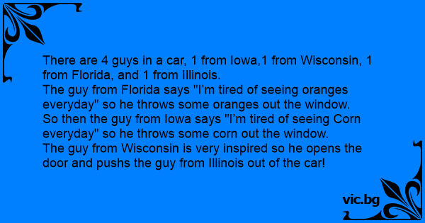 So then the guy from Iowa says "I’m tired of seeing Corn everyday" so he throws some corn out the window.