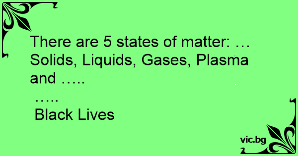 There are 5 states of matter: … Solids, Liquids, Gases, Plasma and …..