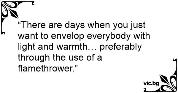 “There are days when you just want to envelop everybody with light and warmth… preferably through the use of a flamethrower.”