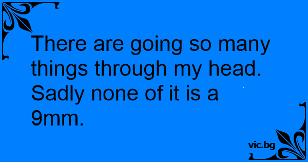 There are going so many things through my head. Sadly none of it is a 9mm.