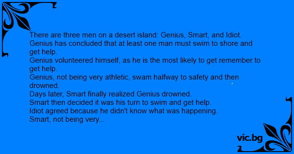 There are three men on a desert island: Genius, Smart, and Idiот.