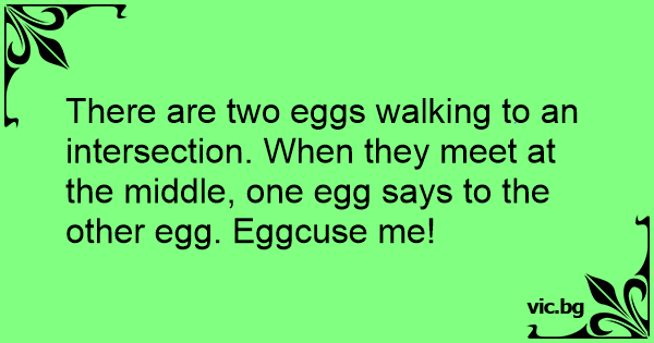 There are two eggs walking to an intersection. When they meet at the middle, one egg says to the other egg. Eggcuse me!
