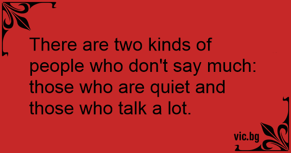 There are two kinds of people who don't say much: those who are quiet and those who talk a lot.