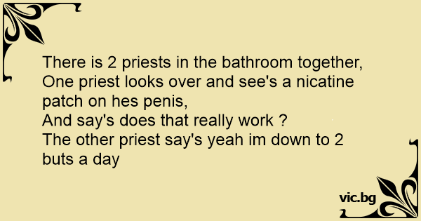 One priest looks over and see's a nicatine patch on hes реnis,