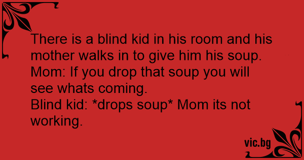 There is a blind kid in his room and his mother walks in to give him his soup.