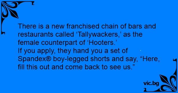 There is a new franchised chain of bars and restaurants called ‘Tallywackers,’ as the female counterpart of ‘Ноотеrs.’