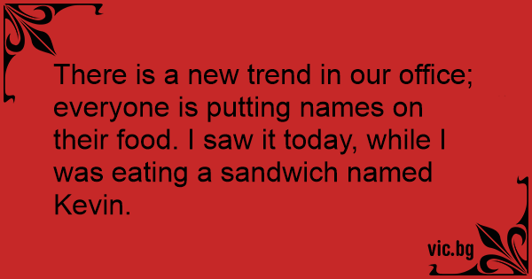 There is a new trend in our office; everyone is putting names on their food. I saw it today, while I was eating a sandwich named Kevin.