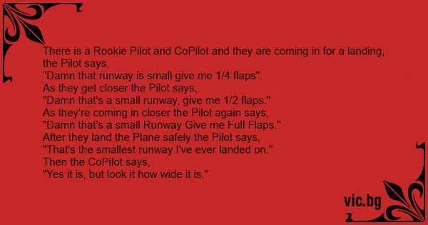 There is a Rookie Pilot and CoPilot and they are coming in for a landing, the Pilot says,