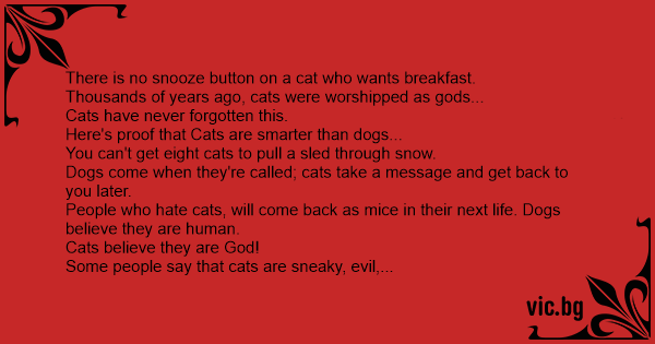 People who hate cats, will come back as mice in their next life. Dogs believe they are human.