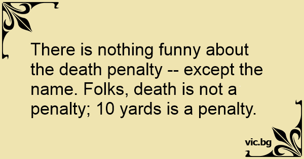 There is nothing funny about the death penalty -- except the name. Folks, death is not a penalty; 10 yards is a penalty.