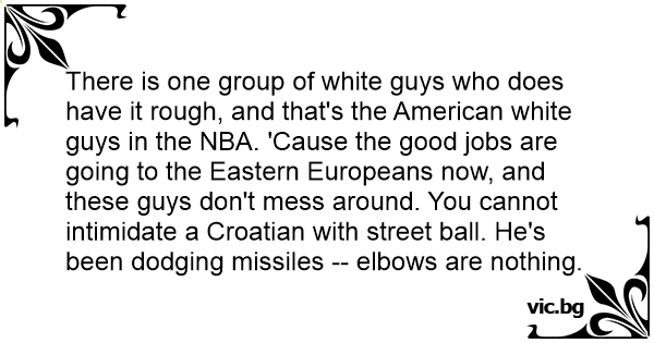 There is one group of white guys who does have it rough, and that's the American white guys in the NBA. 'Cause the good jobs are going to the Eastern Europeans now, and these guys don't mess around. You cannot intimidate a Croatian with street ball. He's been dodging missiles -- elbows are nothing.
