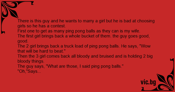 The 2 girl brings back a truck load of ping pong ваlls. He says, "Wow that will be hard to beat."