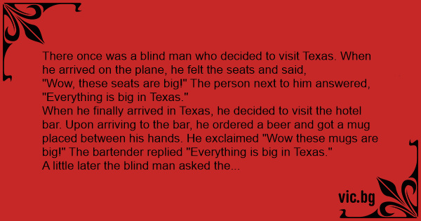 There once was a blind man who decided to visit Texas. When he arrived on the plane, he felt the seats and said,