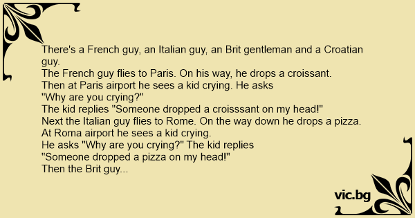 Next the Italian guy flies to Rome. On the way down he drops a pizza.