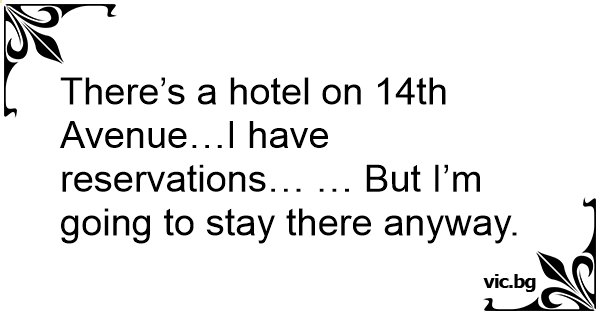 There’s a hotel on 14th Avenue…I have reservations… … But I’m going to stay there anyway.