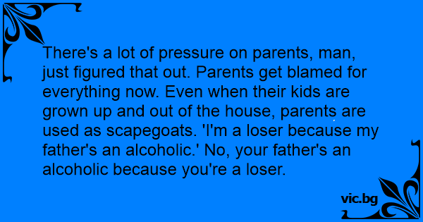 There's a lot of pressure on parents, man, just figured that out. Parents get blamed for everything now. Even when their kids are grown up and out of the house, parents are used as scapegoats. 'I'm a loser because my father's an alcoholic.' No, your father's an alcoholic because you're a loser.