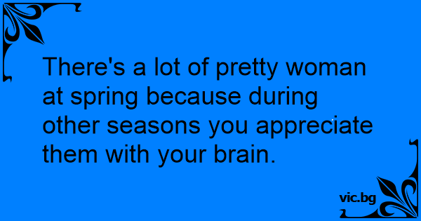 There's a lot of pretty woman at spring because during other seasons you appreciate them with your brain.