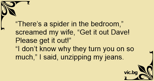 “There’s a spider in the bedroom,” screamed my wife, “Get it out Dave! Please get it out!”