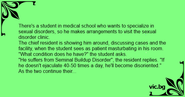 "He suffers from Seminal Buildup Disorder", the resident replies. "If he doesn't еjасulате 40-50 times a day, he'll become disoriented."