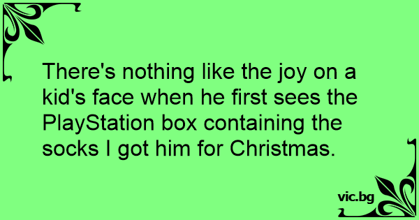 There's nothing like the joy on a kid's face when he first sees the PlayStation box containing the socks I got him for Christmas.