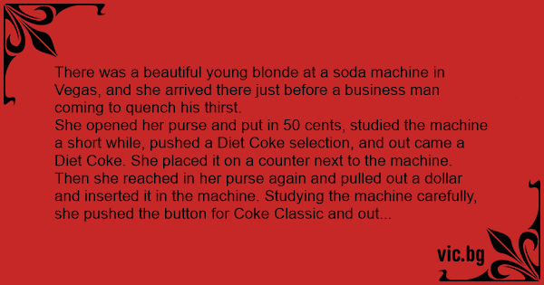 There was a beautiful young blonde at a soda machine in Vegas, and she arrived there just before a business man coming to quench his thirst.