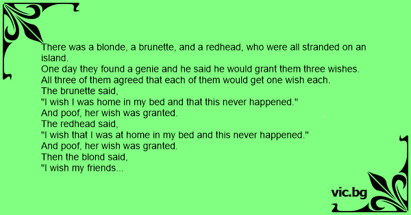 There was a blonde, a brunette, and a redhead, who were all stranded on an island.