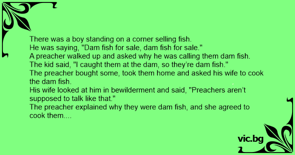 The preacher bought some, took them home and asked his wife to cook the dam fish.