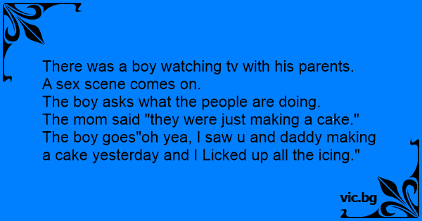 The boy goes"oh yea, I saw u and daddy making a cake yesterday and I Licked up all the icing."
